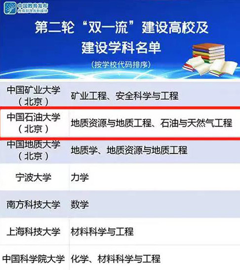 2月14日,教育部网站发布了《关于深入推进世界一流大学和一流学科建设的若干意见》,公布了第二轮“双一流”建设高校及建设学科名单。中国石油大学(北京)入选第二轮“双一流”建设高校,地质资源与地质工程、石油与天然气工程两个学科入选第二轮“双一流”建设学科。