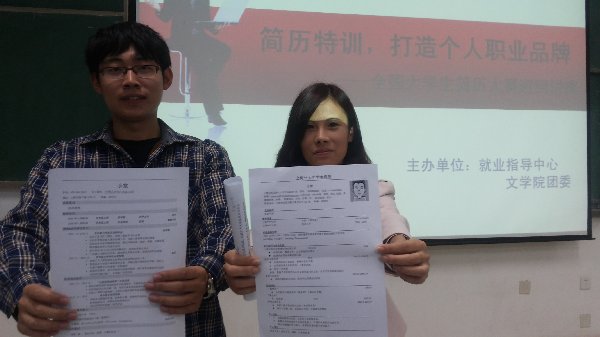 “简历不是写出来的,是用脚走出来的”、“大学是一张白纸,简历是大学生活的真实写照”、“HR看一封简历只用20秒”····晚秋的青岛寒风料峭,但讲座的现场确是异常火爆,预计200人的教室挤满了前来听讲座的同学。
